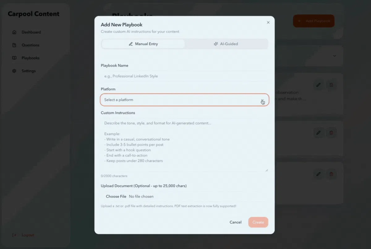 A simple 10-question flow that makes content easy